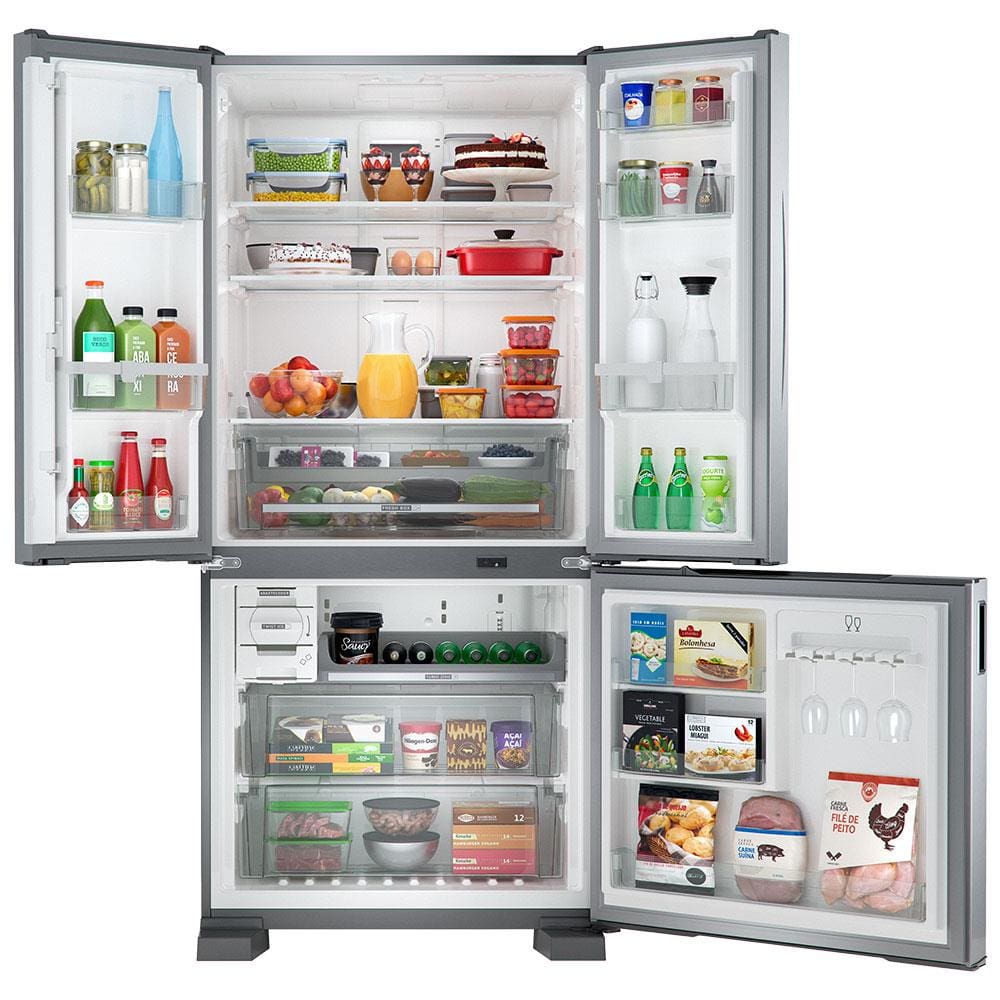 Se você está procurando uma geladeira que contemple economia de energia, grande capacidade e beleza na sua cozinha, acaba de encontrar: Geladeira Brastemp French Door BRO85AK com 554 litros de capacidade, distribuídos entre 377 L no refrigerador e 177 litros no freezer.